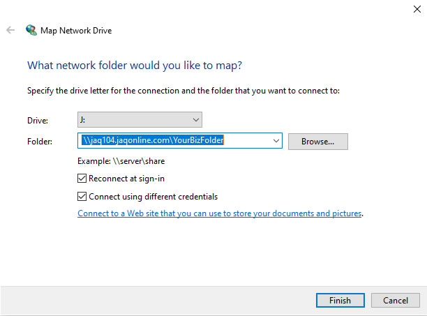 There are a couple methods we can use to map the JAQ drive to your PC. If your office has a fixed public IP address ( ask your IT provider ), then we can use the Windows SMB protocol. If your office doesnt have a fixed IP, or you need to use JAQ at other locations, then we can use the SFTP protocol.